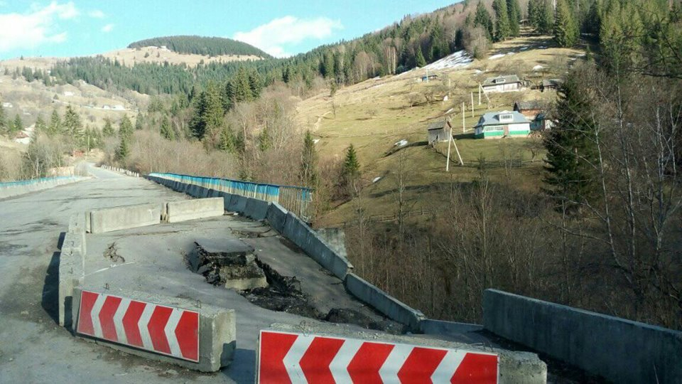 На фото, які опублікував днями місцевий житель Рома Квіцев видно, що дорожнє покриття мосту зсувається у прірву, пише Фіртка.
