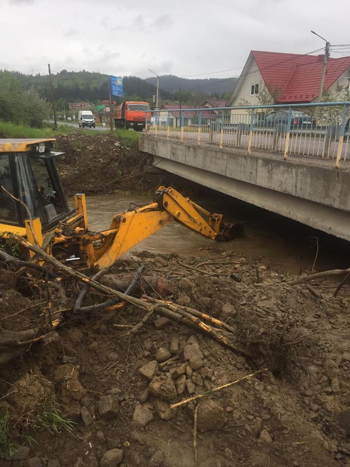 На замовлення Служби автомобільних доріг в Івано-Франківській області підрядна організація проводить роботи із розчищення підмостового русла через потік Мересний у селі Микуличин Яремчанської міської ради.