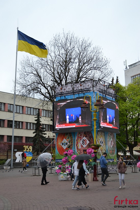 Флешмоб триває якісь 10 хвилин: молодь із різних громадських організацій розгортає стяг і тримає його під пісню «Я люблю мій Івано-Франківськ». Невеличку промову виголошує заступник міського голови Олександр Левицький і прапор поволі згортають.