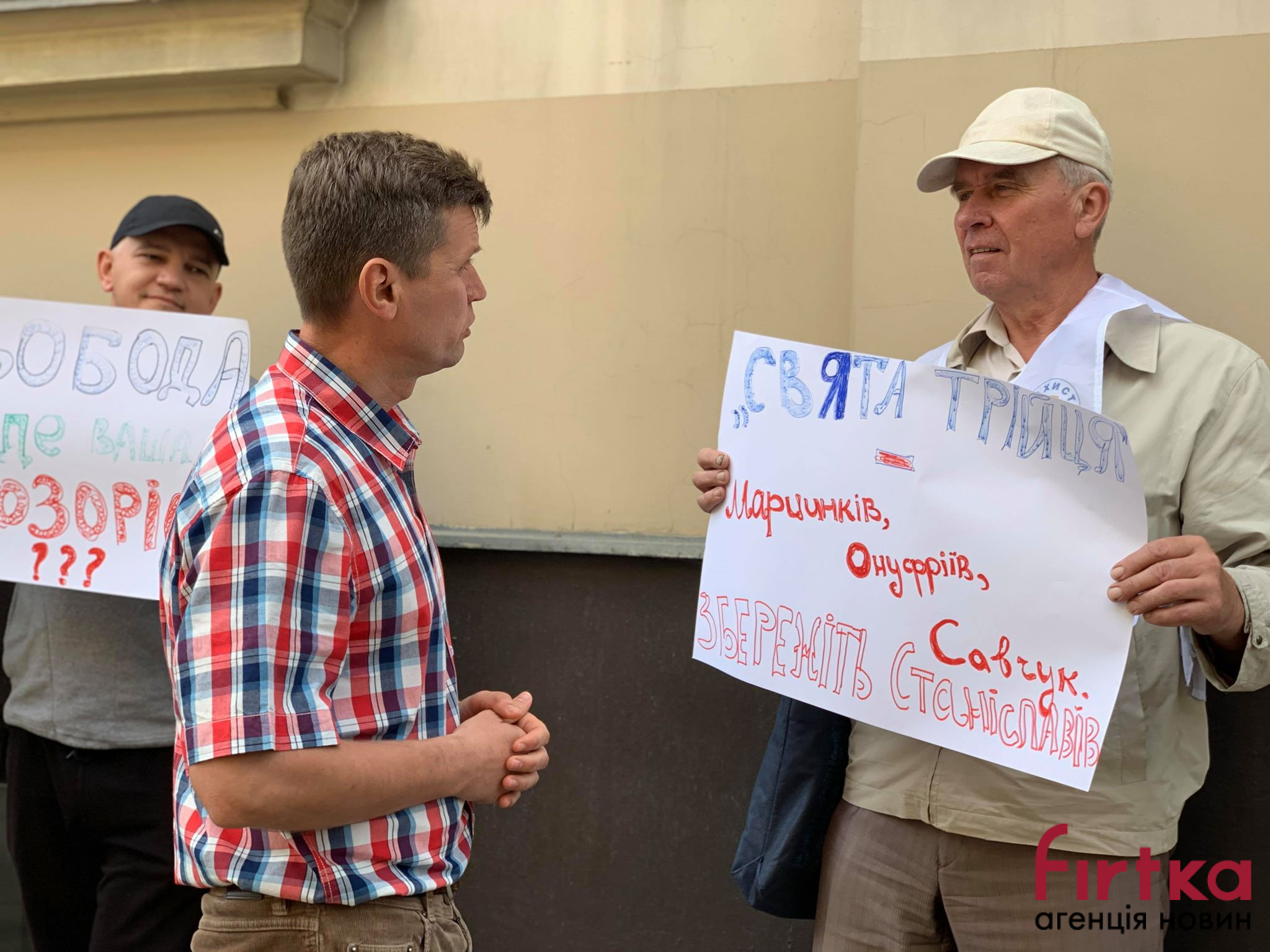 "Ні розкраданню міського майна!" Під таким гаслом сьогодні, 6 червня, активісти партій "ВОЛЯ", "Самопоміч", а також ГО "Захист Є" вийшли на акцію протесту проти привласнення за безцінь "свободівцем" Романом Онуфрієвим приміщення у центрі Івано-Франківська.