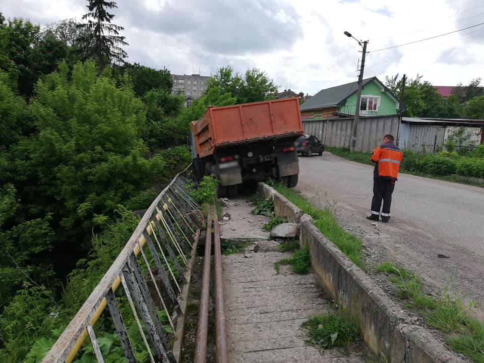 ДТП на Прикарпатті: Камаз протаранив огорожу мосту (фото)