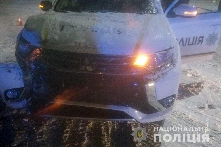 Рухаючись до місця призначення, поліцейський автомобіль на слизькій дорозі зіткнувся з мікроавтобусом "Мерседес Спрінтер".