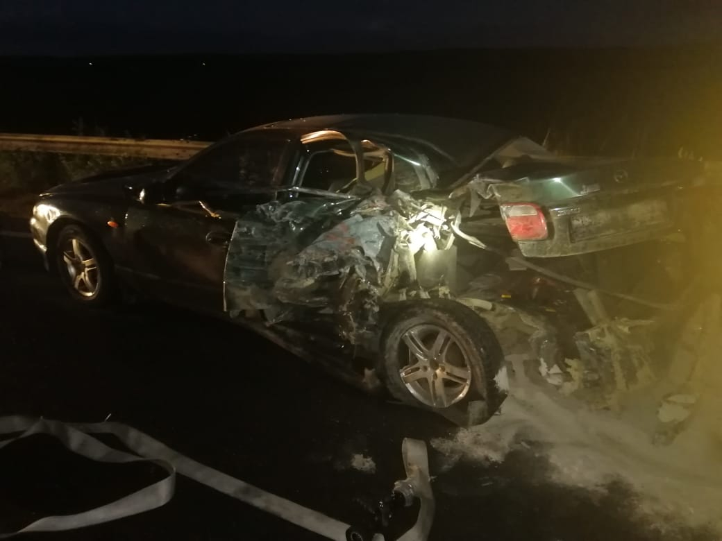 Працівниками ДСНС від’єднано клеми АКБ у автомобілі «МАЗДА» та проведено змивання паливно-мастильних матеріалів з проїжджої частини дороги.