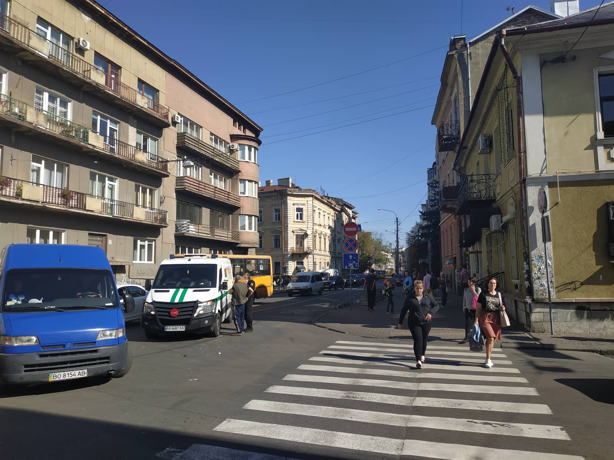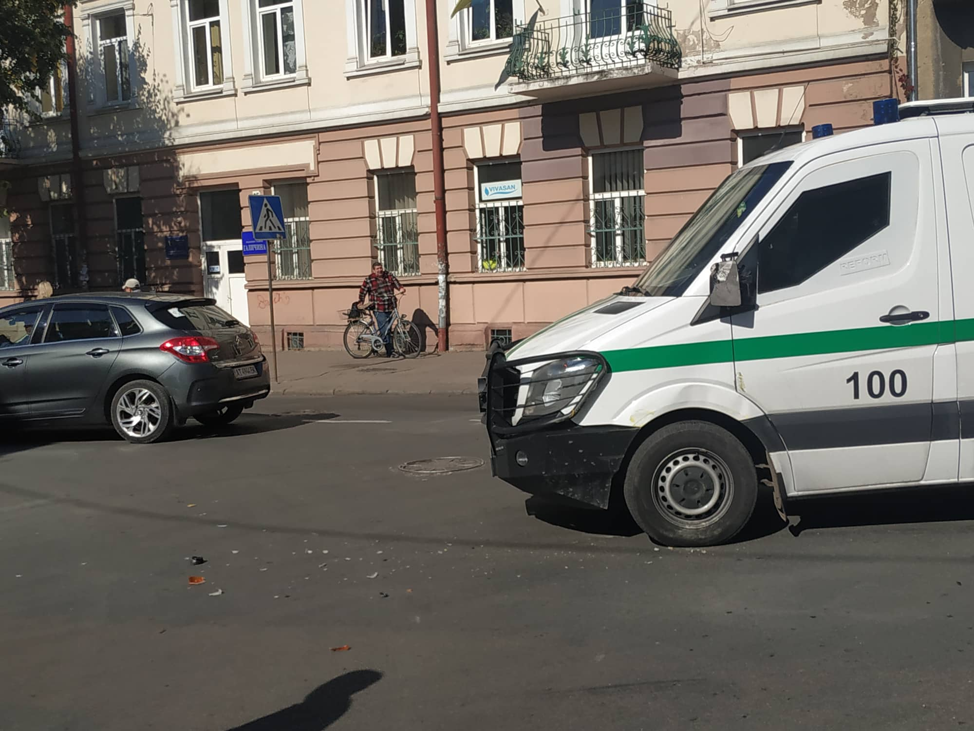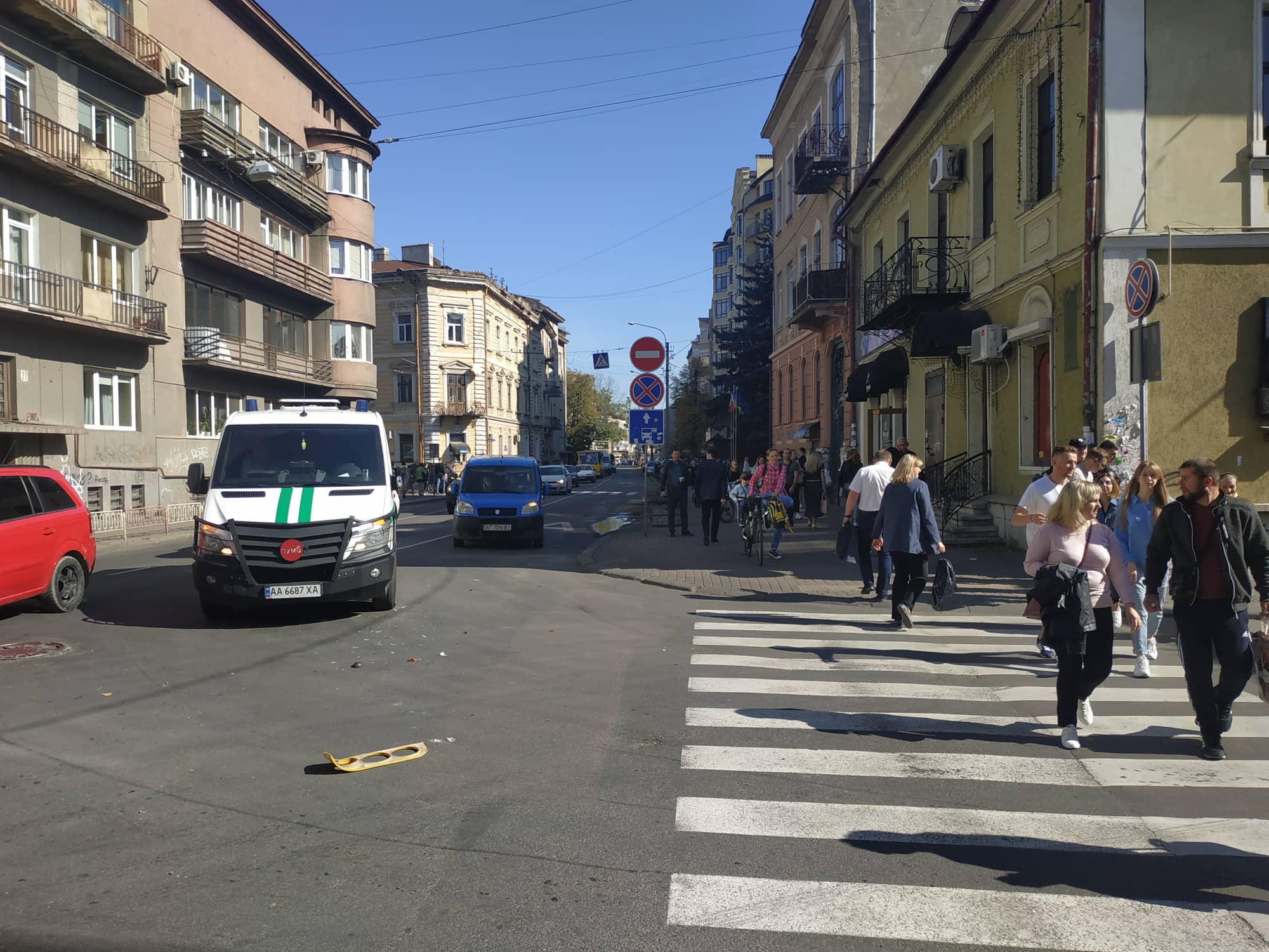 "Водій маршрутки висадив людей, а в інкасаторів розбите дзеркало. Рух не ускладнений", - йдеться у повідомленні.