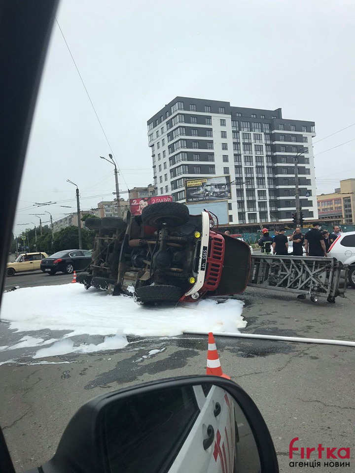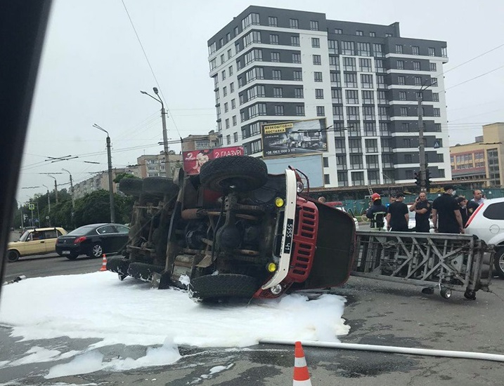 ДТП у Франківську: на перехресті перекинувся пожежний автомобіль (ФОТО/ВІДЕО)