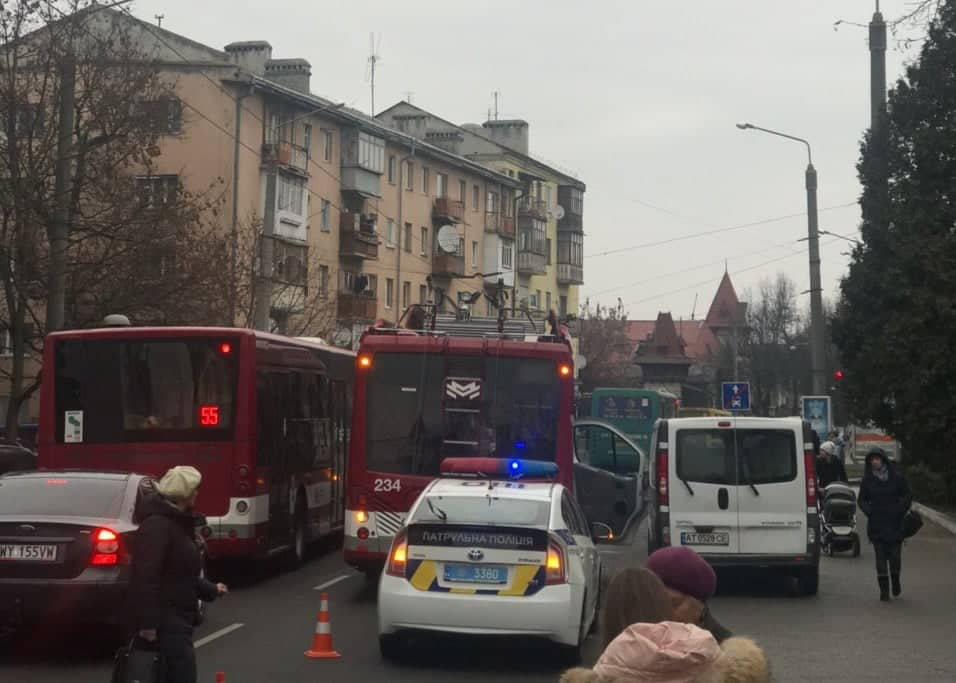 В Івано-Франківську на вулиці Дністровській трапилась дорожньо-транспортна пригода за участю тролейбуса.