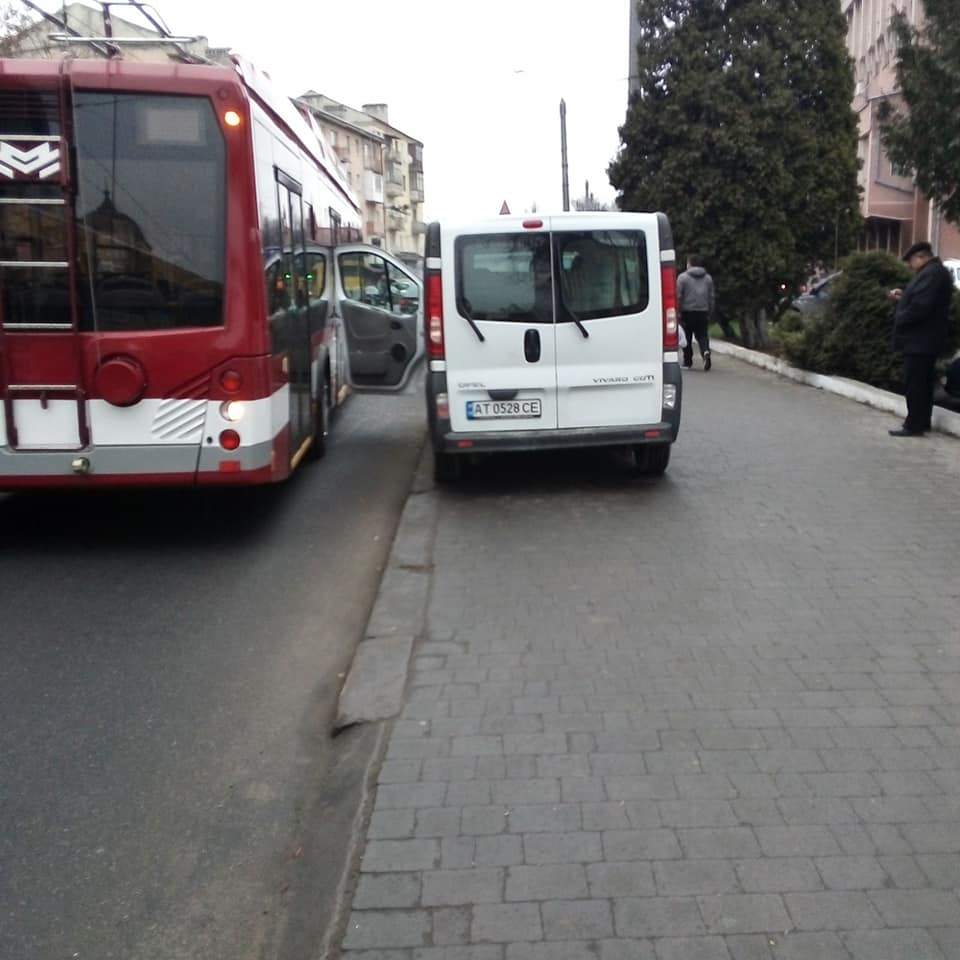 ДТП у Франківську: тролейбус ледь не відірвав дверцята припаркованого буса (ФОТОФАКТ)