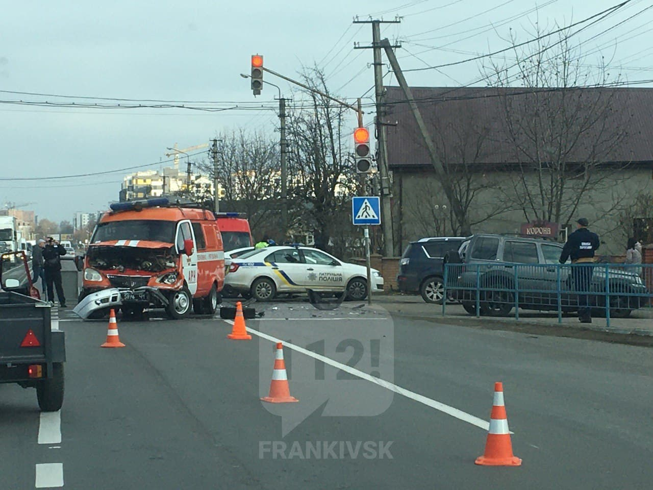 «По вулиці Крихівецькій автомобіль ДСНС їхав з увімкненими проблисковими маячками. Відбулося зіткнення з автомобілем Land Rover. Поки за медичною допомогою звернувся працівник ДСНС - у нього розбите обличчя. Щодо дітей, на даний момент немає повідомлень про отримані тілесні ушкодження. На місце події виїхали патрульні та швидка», - повідомила речниця патрульної поліції Івано-Франківщини Христина Мриглід.