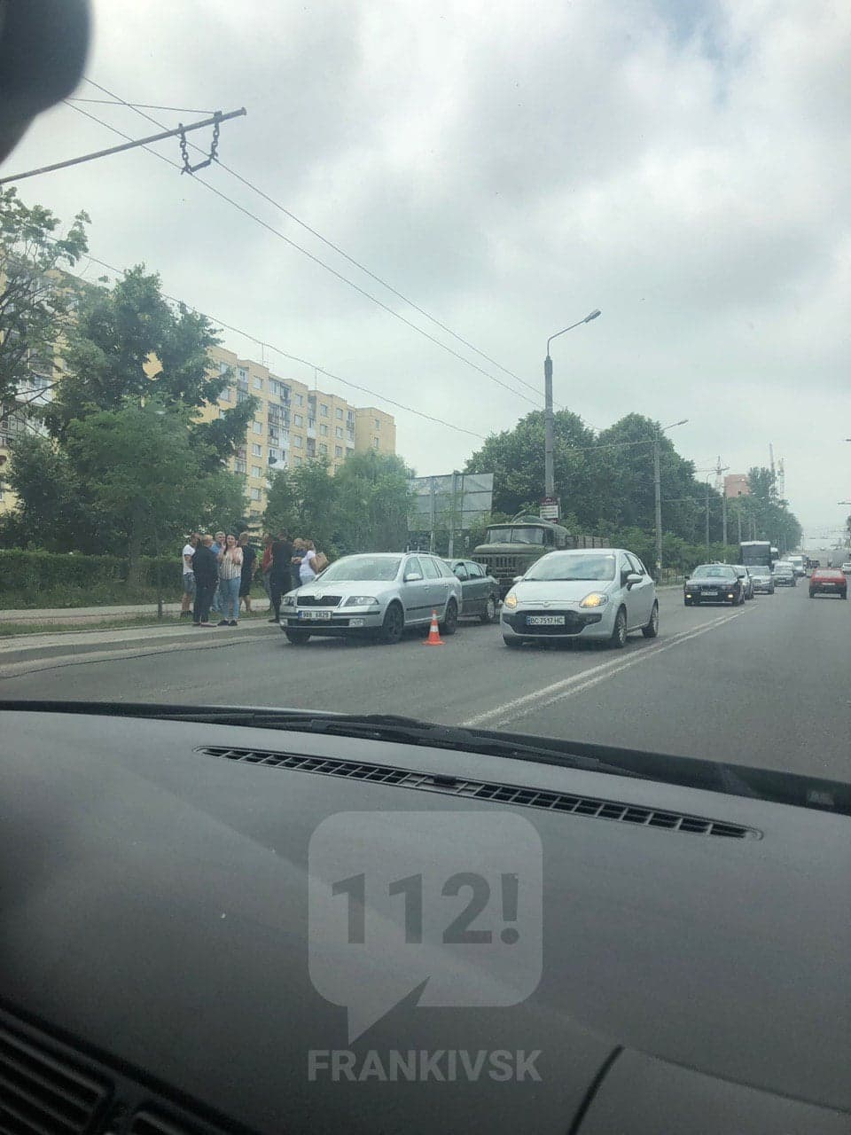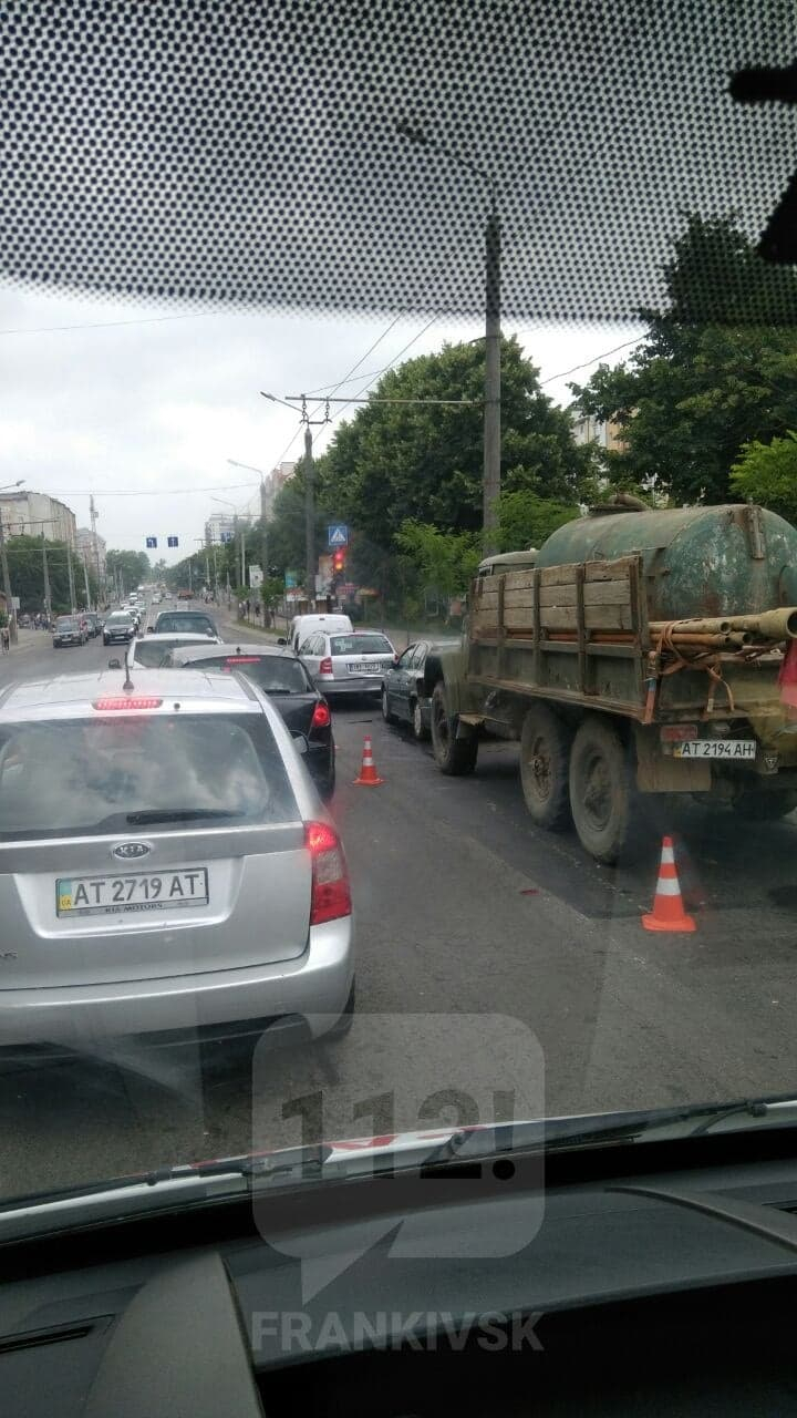 Сьогодні, 22 червня, в обідню пору на вулиці Галицькій в Івано-Франківську трапилась ДТП. Зіткнулося три автомобілі.