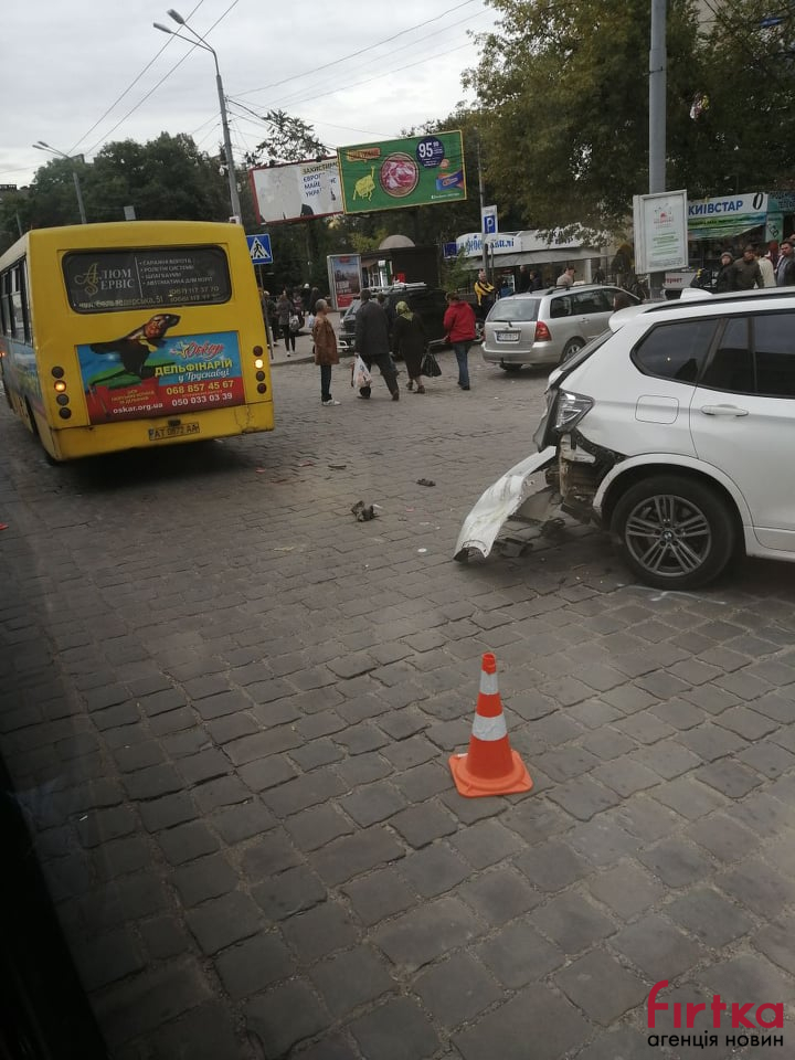 Як повідомляють очевидці у телеграм-чаті IF INFO, маршрутний автобус “підрізав” автомобіль БМВ, пише Фіртка.