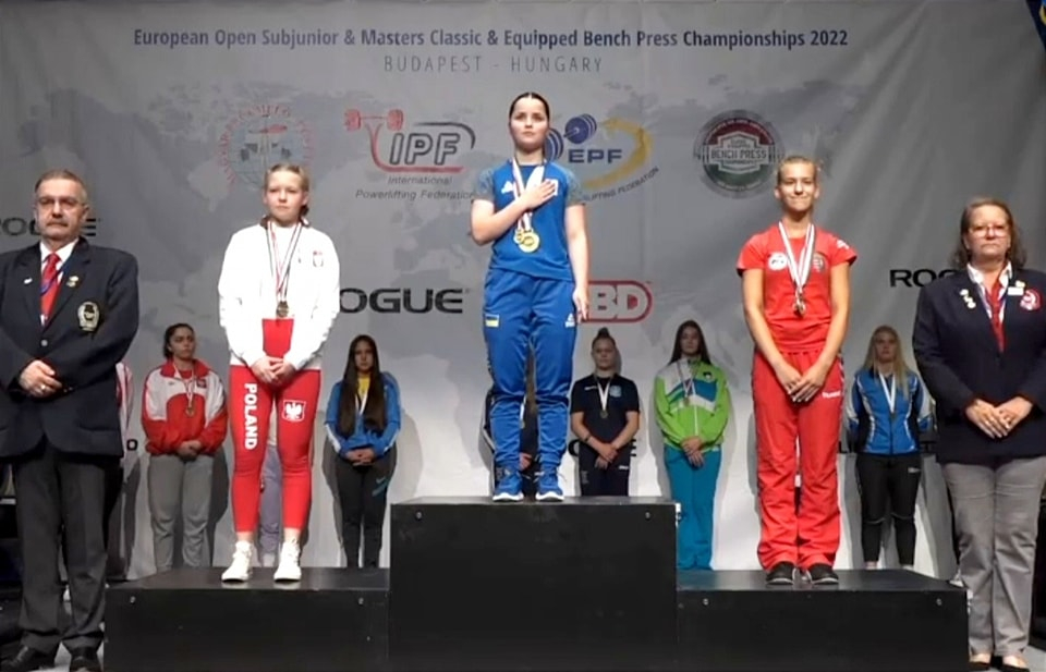 Юна пауерліфтерка, чемпіонка світу, Євгенія Гевко стала й чемпіонкою Європи у своїй ваговій категорії 52 кілограми з результатом 72,5 кілограми.