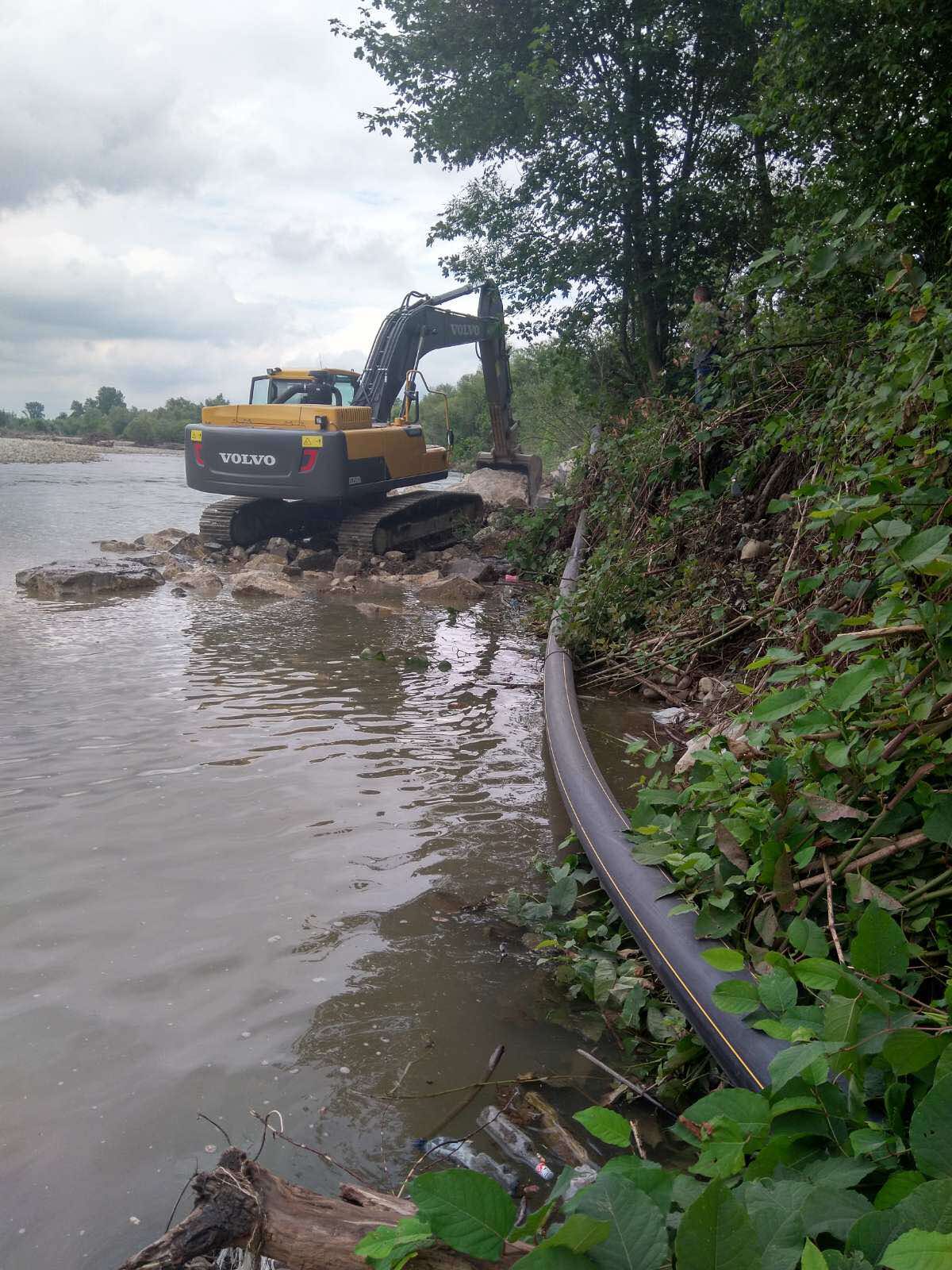 Протягом тижня 10 фахівців «Івано-Франківськгазу» без вихідних, працюючи по 12-13 годин на день, із залученням спецтехніки провели комплекс робіт по відновленню підвідного газопроводу. Передусім, було перенесено частину мережі, яка внаслідок паводків опинилася в руслі річки на прибережну територію.  Це дозволило підрядній організації продовжити роботи  по будівництву дамби.