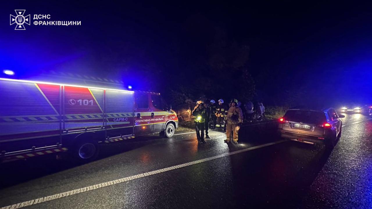 Тієї ж ночі ще одна дорожньо-транспортна пригода сталася у селі Майдан Ямницької територіальної громади Івано-Франківського району. Там зіткнулися легковий автомобіль та мікроавтобус, у якому перебували 20 пасажирів.