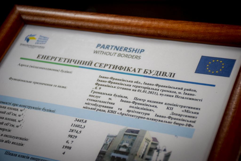 Зі слів посадовиці, такі сертифікати передбачені Закону України «Про енергетичну ефективність» будівель, про серед бюджетних установ Івано-Франківської міської територіальної громади Департамент містобудування став однією з, як то кажуть, перших ластівок, чия будівля отримала вказаний документ