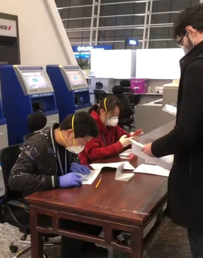 Розпочалася реєстрація пасажирів і багажу на спецрейс авіакомпанії SkyUp. Пасажири українського рейсу в обов’язковому порядку проходять санітарний контроль на предмет виявлення ознак захворювання на коронавірус COVID-2019.