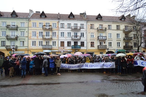 Усі на "євромайдан". Студенти прикарпатських вищих навчальних закладів вийшли на мітинг протесту проти призупинення процесу підготовки до підписання Угоди про асоціацію з ЄС.