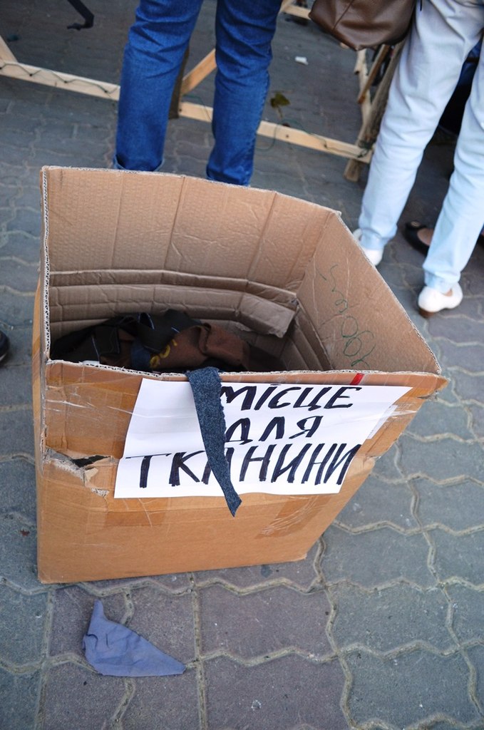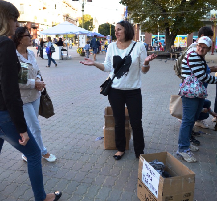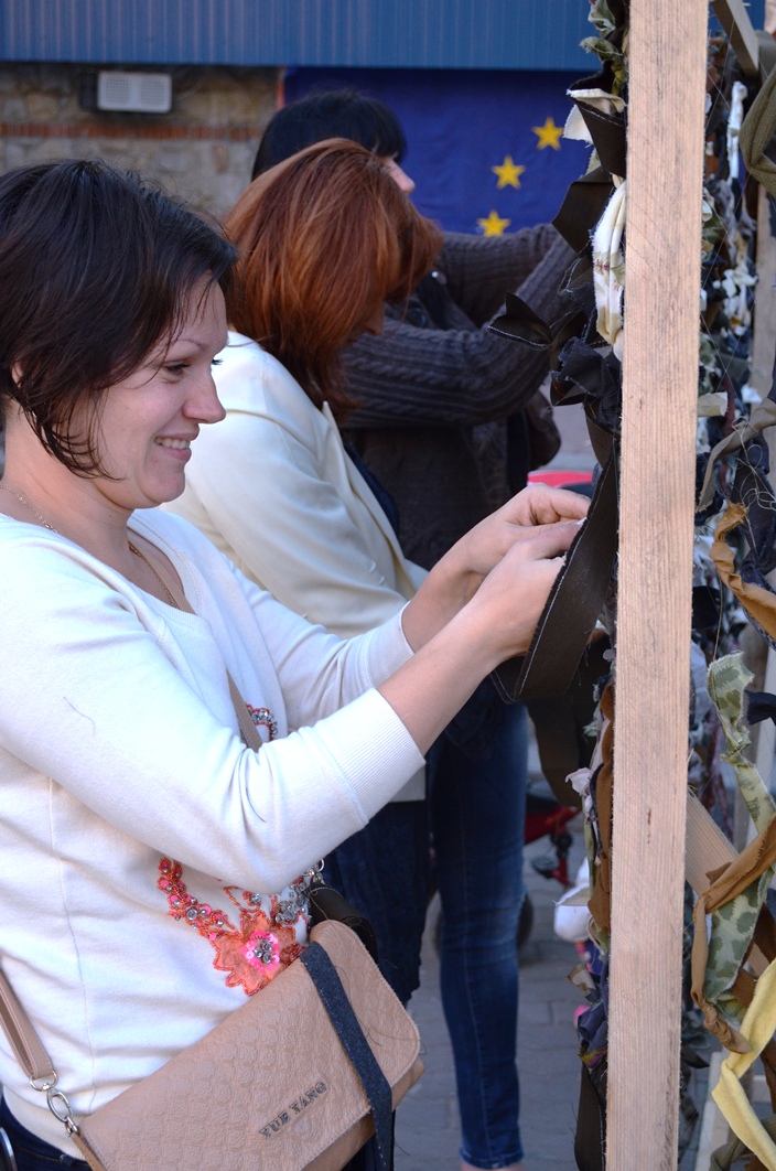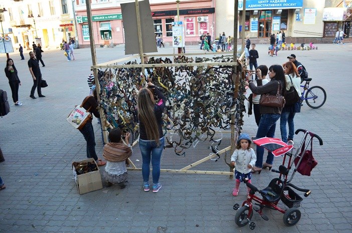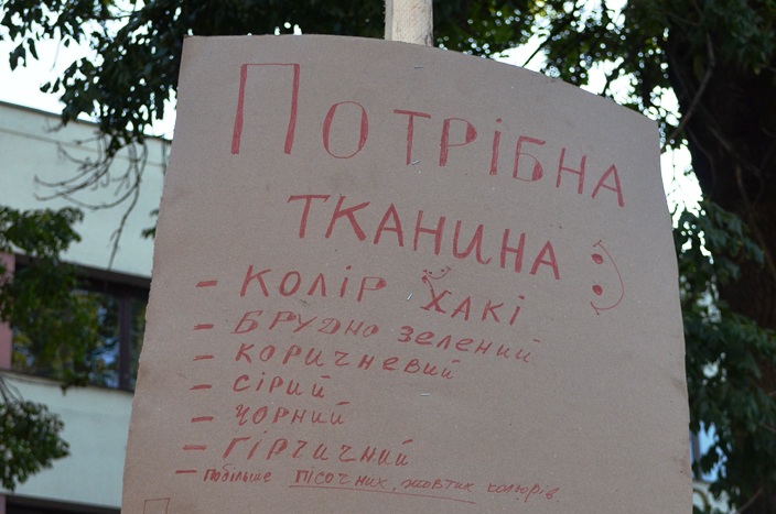 За кілька днів жінки вже виготовили дві маскувальні сітки. Незабаром передадуть батальйону «Азов», а згодом й іншим батальйонам. Акція триватиме щодня на Вічевому майдані обласного центру.