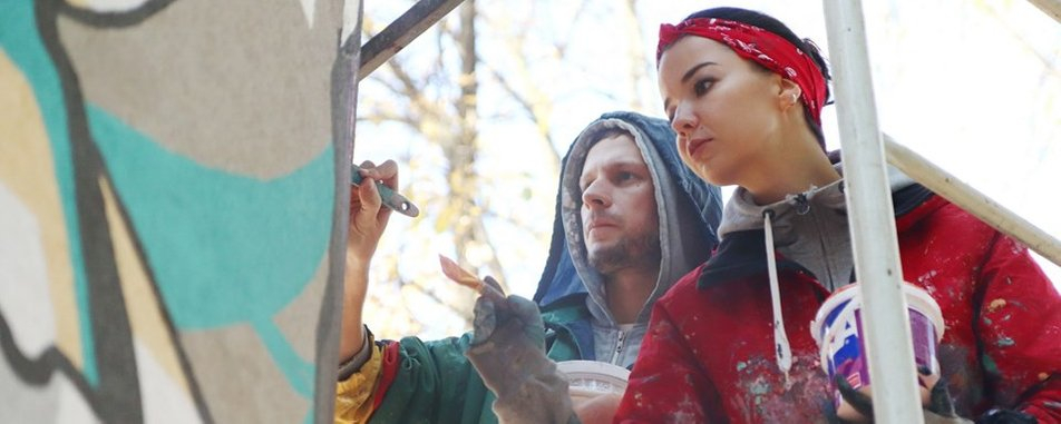 Подружжя івано-франківських художників Юрія та Марти Пітчуків розмістили у мережі YouTube відео створення муралу у Чернівцях до Всесвітнього дня вишиванки.