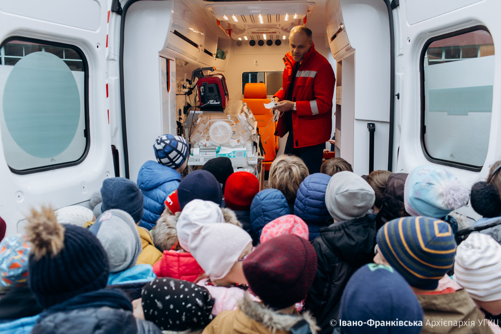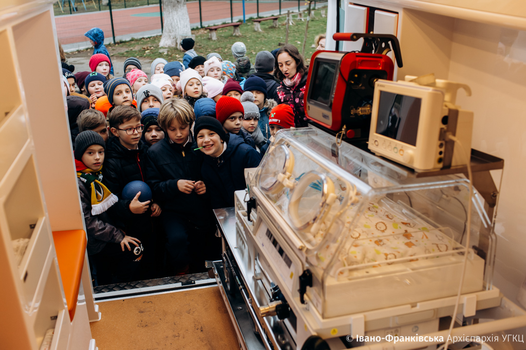 В свою чергу, лікарі продемонстрували дітям, як буде застосовуватися їх подарунок. Лікарі розповіли  про  роботу медичної апаратури під час транспортування немовлят.
