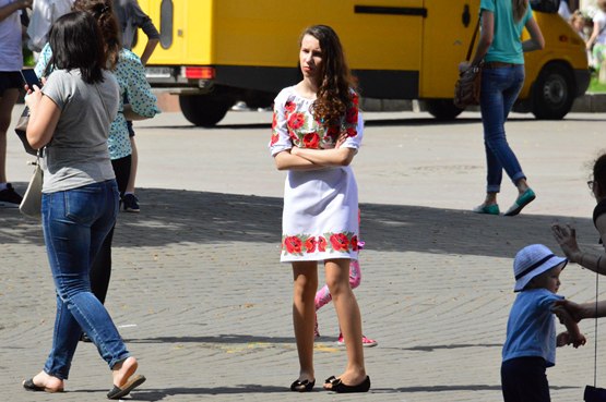Більшість учнів вбрані в національне вбрання з патріотичною символікою: у вишиванках та з віночками на голові, повідомляє кореспондент Фіртки.