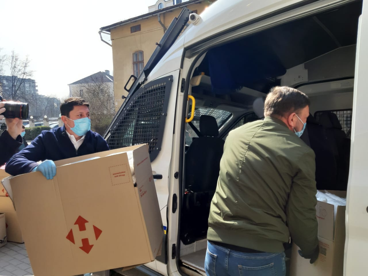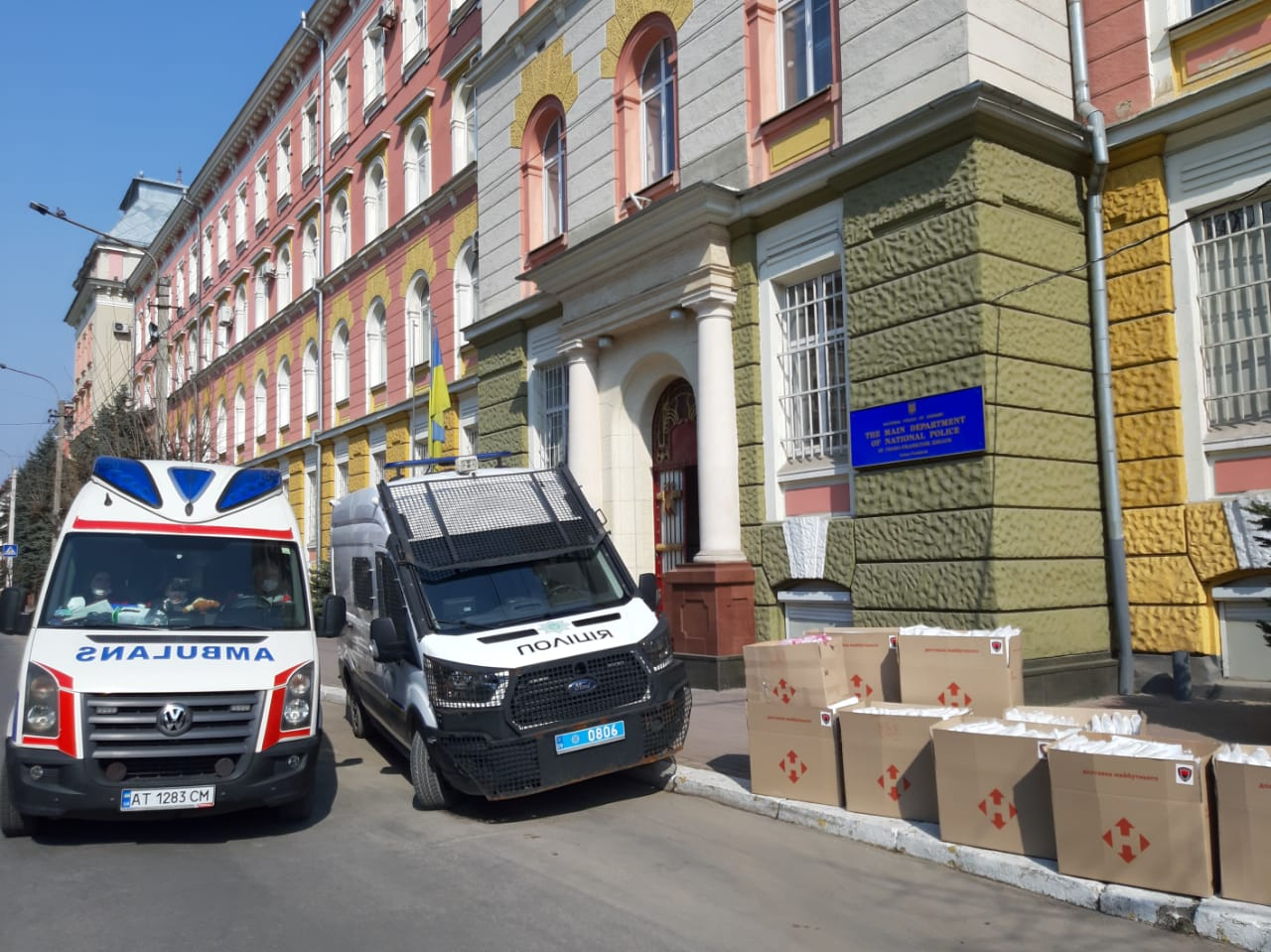 Засоби індивідуального захисту для медиків та поліцейських розподілили наступним чином: 300 комплектів та 150 респіраторів передали медичним працівникам, 200 комплектів та 100 респіраторів – поліції.