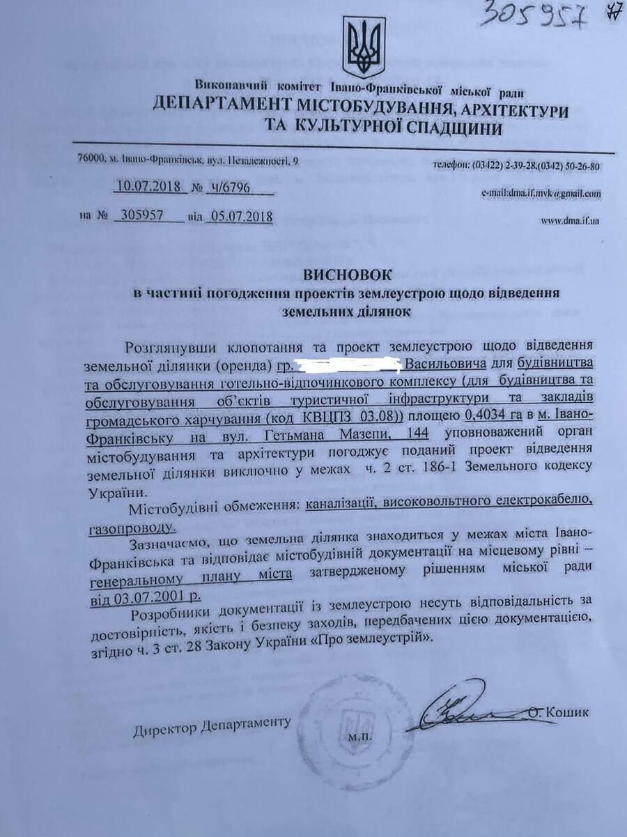 Як розповів підприємець, у жовтні 2018 року він звернувся до Івано-Франківської міської ради з приводу затвердження проєкту землеустрою щодо відведення йому земельної ділянки та передання її в оренду на десять років.