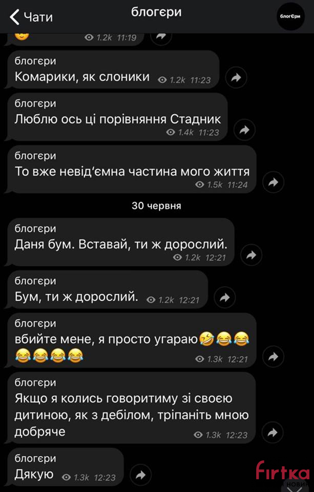 "Вона є (чи була, уже не впевнений) студенткою Прикарпатського національного університету і колись вона була фанаткою моєї дружини та нашої сім’ї, залишала багато приємних коментарів у Інстаграмі та навіть почала вести групу у ВК (тоді ще працюючому на території України), де перекладала усі пости дружини на російську мову, аргументуючи це бажанням, щоб наша аудиторія розширювалась. Коли ж дружина пояснила їй, що ми вдячні, але нам це не потрібно, Юлія моментально перейшла у «табір» ображених, на інтернет-просторах їх називають хейтерами, розповідає блогер. - Спершу вона, на своїй сторінці у Інстаграм, почала знімати різноманітні пародії на нашу сім’ю, зі звичайними кривляннями і, як вона сама їх називала, підколами. Мушу визнати, що перших півроку ці пародії були абсолютно безневинні, стосувались конкретно моєї дружини та мене, нам регулярно їх присилали підписники, але ми абсолютно ніяк не реагували на них. Звичайно ж, Юлю це не влаштовувало і пародії ставали щоразу негативніші, тепер уже з присутністю у них нашого однорічного сина і різних нецензурних словечок у його сторону".