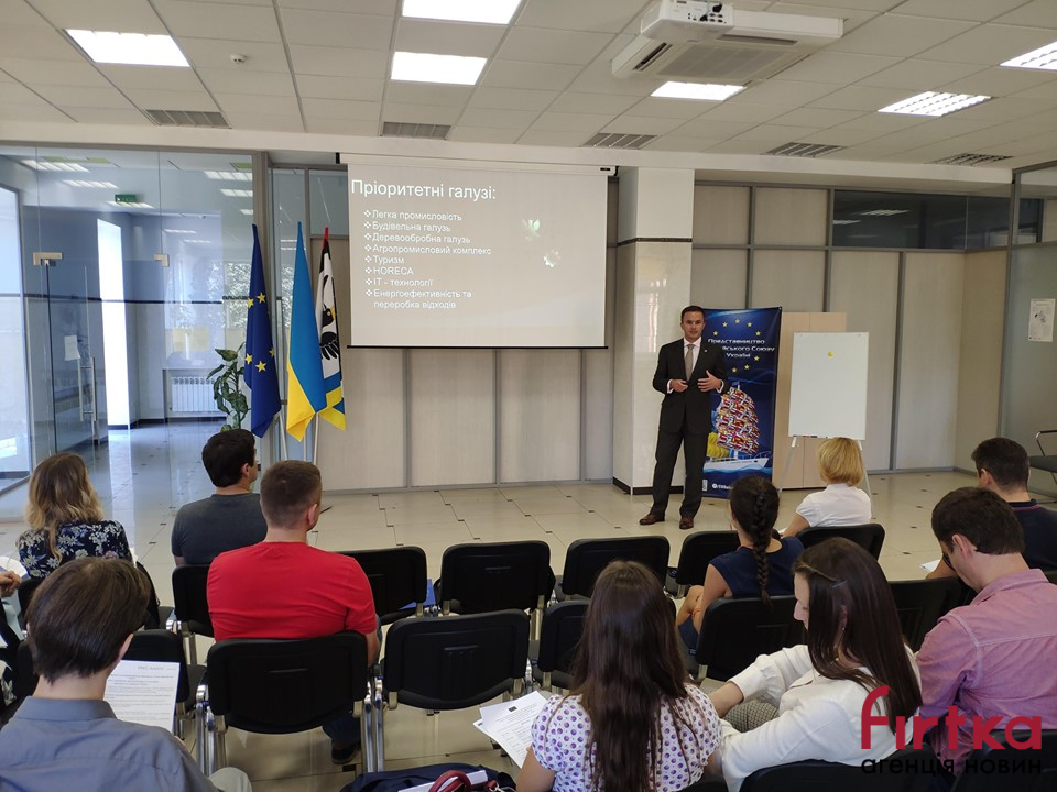 Спершу спікер окреслив пріоритетні галузі нашого краю. Зокрема, це легка промисловість, будівельна, деревообробна галузь, агропромисловий комплекс, туризм, готельно-ресторанний бізнес, ІТ-сфера та енергоефективність.