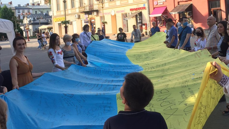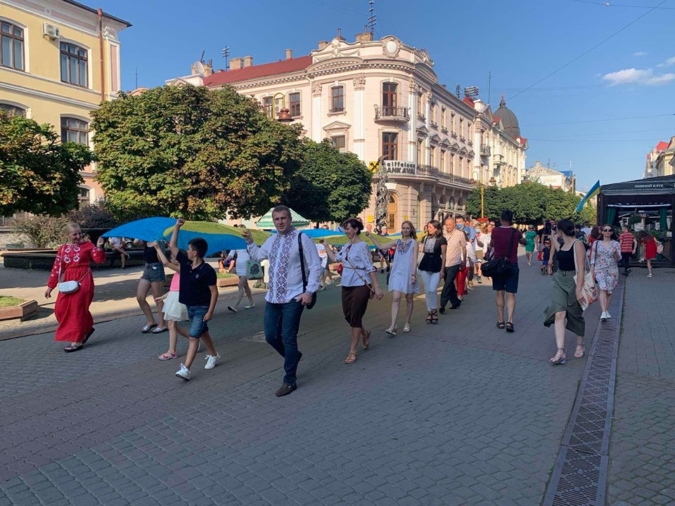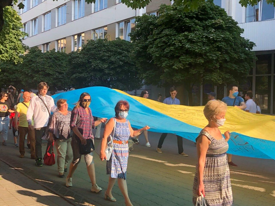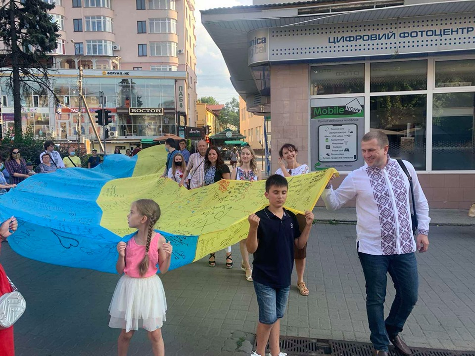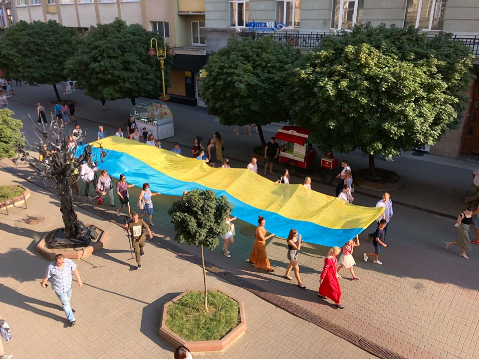Три десятки мешканців Івано-Франківська пронесли вулицею Незалежності 20-метровий прапор.