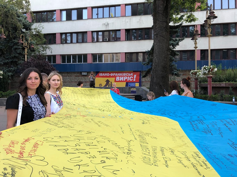 «Сьогодні до нас привезли прапор, який мандрує Україною і об’єднує українців. Зранку він був у Коломиї, зараз у Франківську, а вже завтра його відправлять на Закарпаття. Він об’їжджає країну із сходу на захід, із півночі на південь», - розповіла організаторка акції Наталія Перцович.
