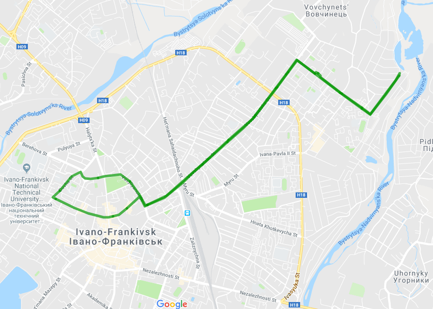 Згідно з маршрутною мережею громадського транспорту міста Івано-Франківська вищезгаданий перевізник обслуговував у міста п'ять маршрутів" №30 - «вул. Хоткевича- АС-3", №32 - "вул.Симоненка - Обласна лікарня", № 34 - "село Вовчинець - вул. Тичини", № 34а "вул. Тичина - вул. Потічна" та № 39 - "село Угорники - Обласна лікарня".