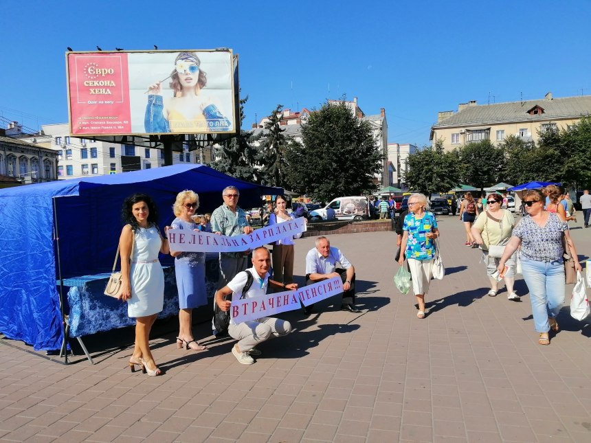 Під гаслом «Нелегальна зарплата – втрачена пенсія» працівники головного управління Пенсійного фонду України в області провели флешмоб на центральній площі Ринок в місті Івано-Франківську.