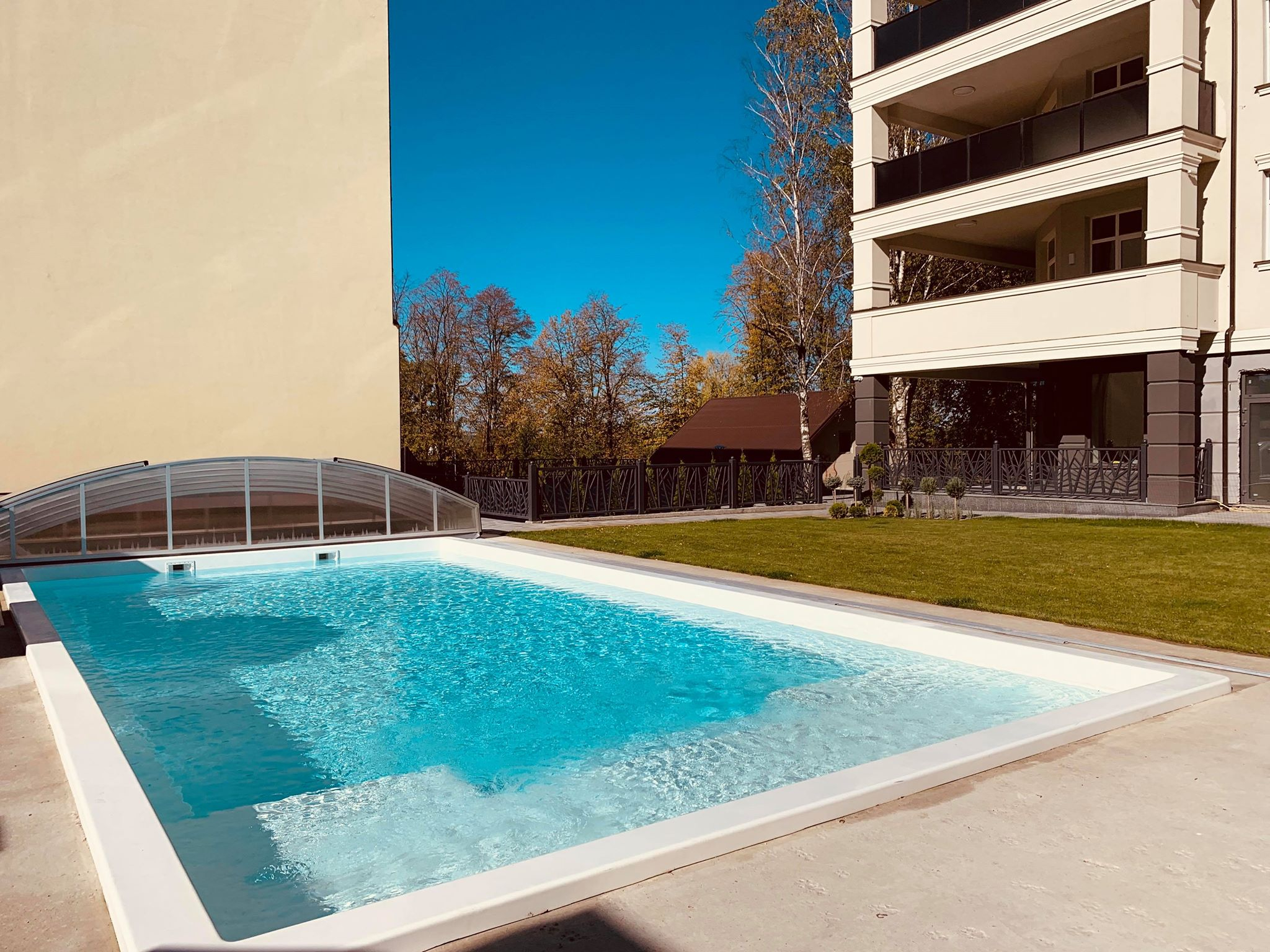 У 6-ти поверховому будинку спроєктовано 30 квартири із просторими площами - від 110 до 130 кв.м. У будинку є приватний басейн з підігрівом, лаунж-зона, гаражі та місця для паркування. Територія цілодобово охороняється, пише Фіртка.
