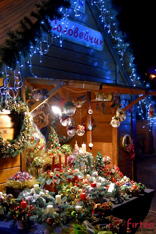 Тут, окрім смаколиків, можна знайти й оригінальні сувеніри ручної роботи, різноманітні новорічні віночки, композиції, ялиночки, свічки, ялинкові прикраси, оригінальні пряники, в'язані шапки, пов'язки, шкарпетки, декоративні подушечки та багато іншого.