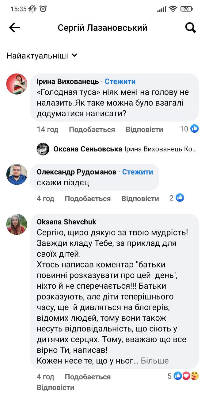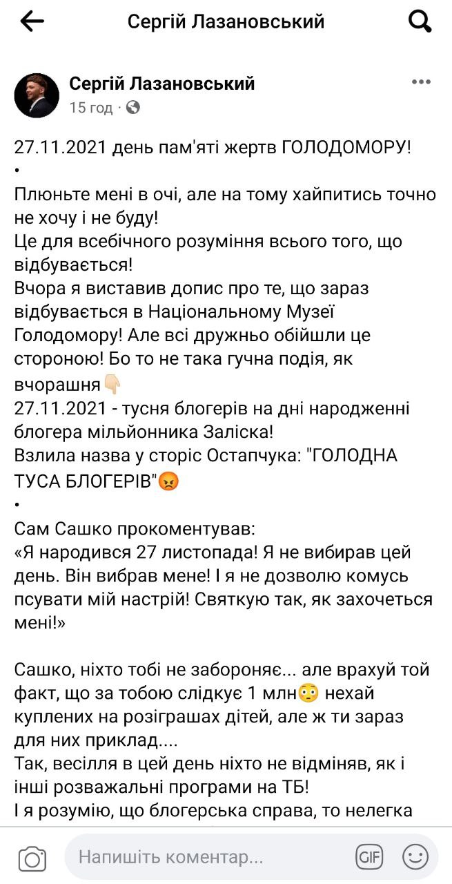 Не обійшов стороною дану ситуацію і наш краянин, переможець Голосу країни - Сергій Лазановський. Він також зібрав реакцію підписників: