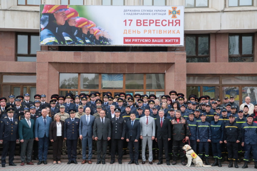 Сьогодні на площі Соборності перед обласною державною адміністрацією відбулися урочисті заходи, приурочені професійному святу працівників аварійно-рятувальних служб, пожежної охорони, спеціальних формувань, а також тих, хто зробив свій внесок у справу ліквідації наслідків надзвичайних ситуацій техногенного та природного характеру, захисту життя і здоров’я людей.