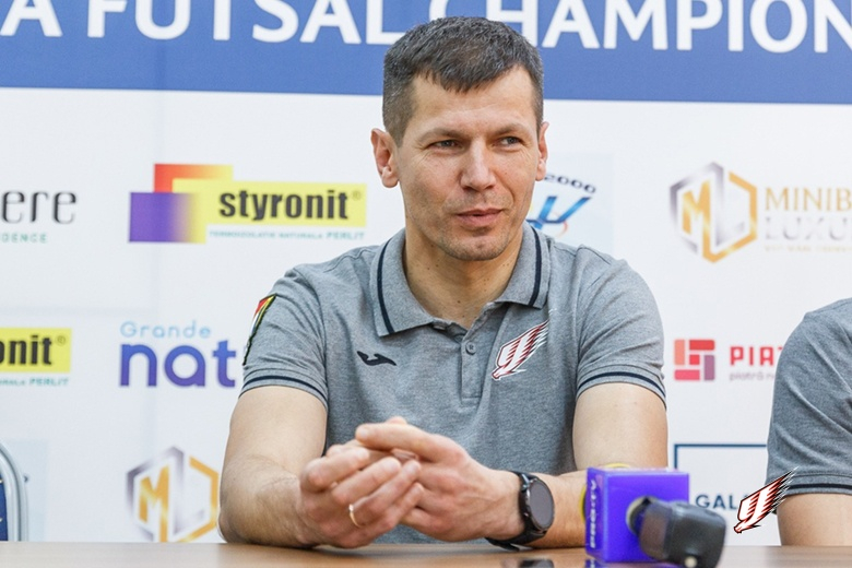 Перш за все хочу подякувати начальнику Івано-Франківського ОТЦК та СП полковнику Ярмошуку Володимиру Сергійовичу за допомогу та сприяння щодо забезпечення участі команди в основному раунді Ліги Чемпіонів. Щодо самих поєдинків, то перший матч, незважаючи на переконливий результат, видався непростим. За рахунку 1:0 на нашу користь гравець "Юнайтед Галац" Даніель Араужо не реалізував десятиметровий на що ми відповіли трьома забитими м'ячами та граючи по рахунку довели матч до вкрай важливої перемоги з переконливим рахунком.