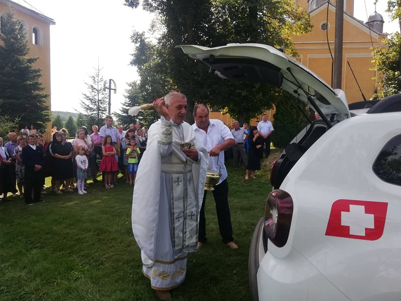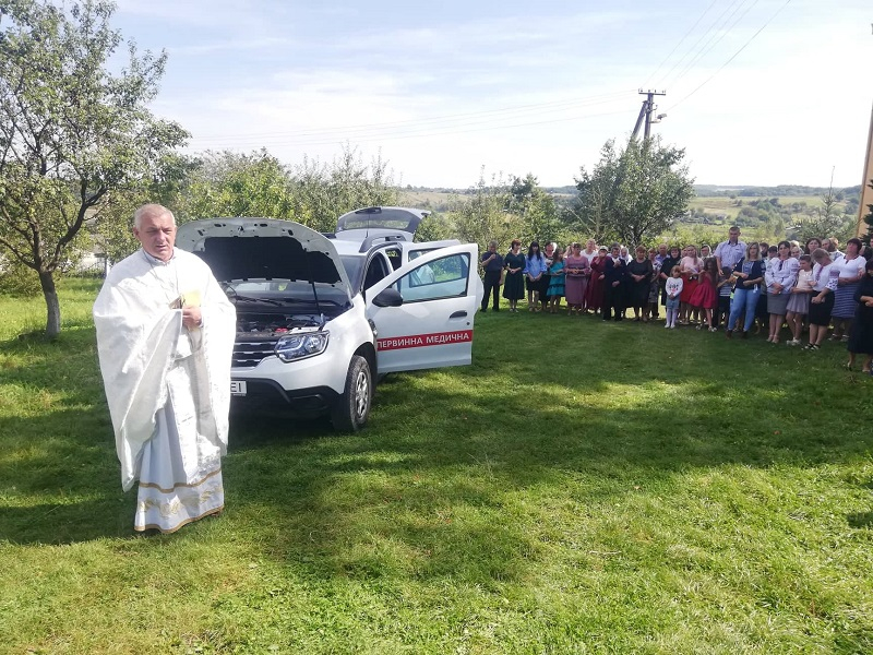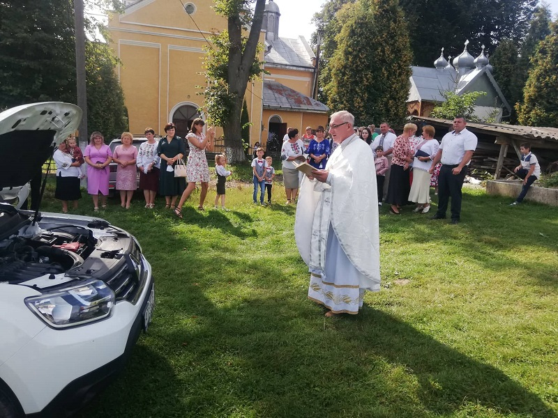 Освятив новий транспорт місцевий священнослужитель.