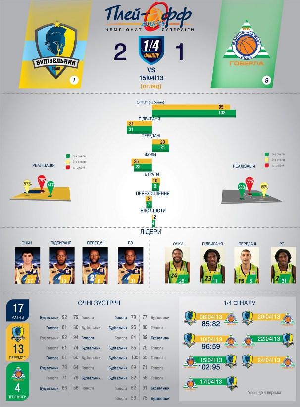 Ударне ж тріо «Будівельника» склали Артур Дроздов (27 очок + 5 підбирань), Георгі Цинцадзе (24 очка + 5 передач) і Лео Лайонс (21 очко + 10 підбирань).