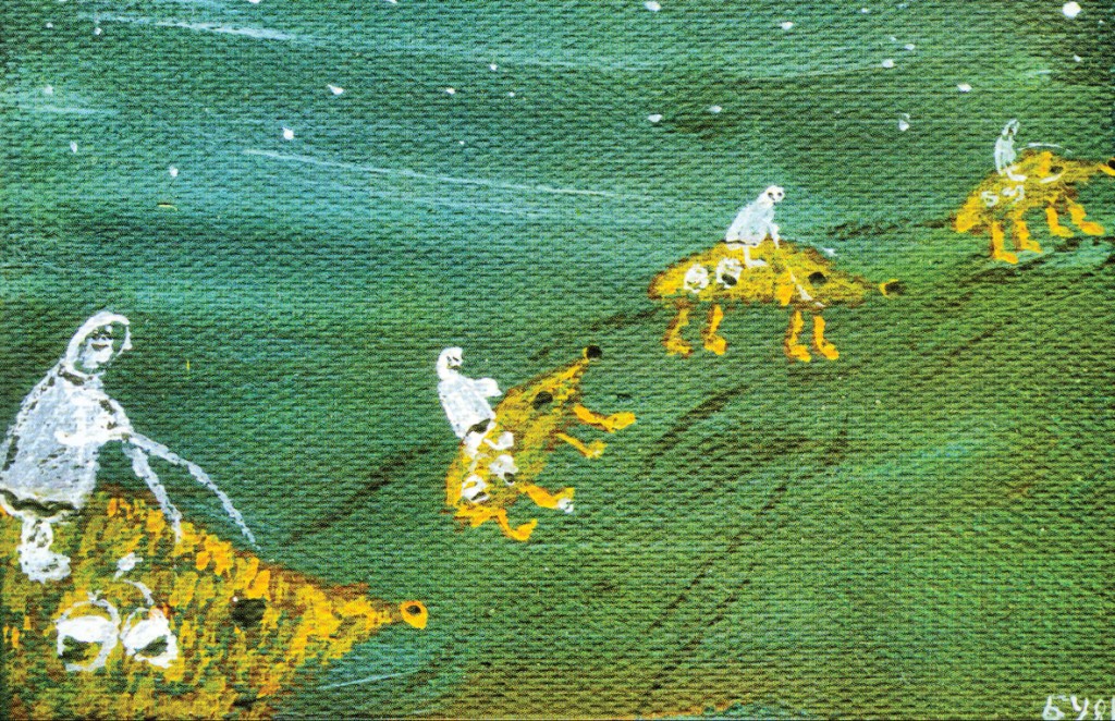 "Ми робимо все по кайфу. Робимо тільки те, що нас пре. Зараз будемо робити дитячу книгу, але вона не буде тільки про єжів. Буде багато інших персонажів, наприклад, велетенські зубаті форелі. Ці форелі вночі крали ліжники у жінок, які прали їх в ріці, а потім форелі продавали ці ліжники на базарі у Косові. Так і виник Косівський ринок. А самі форелі покрилися візерунками від ліжників, які возили на собі", - відхиляє Петро завісу майбутньої книги.