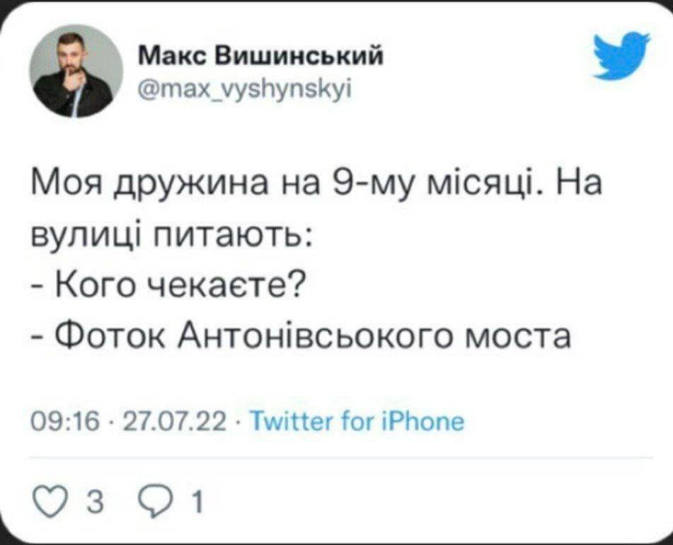 Радник глави Офісу президента Михайло Подоляк зазначив, що після ударів Збройних Сил України по Антонівському мосту у тимчасово окупованому Херсоні окупантам слід залишити місто. Про це він написав у Twitter.