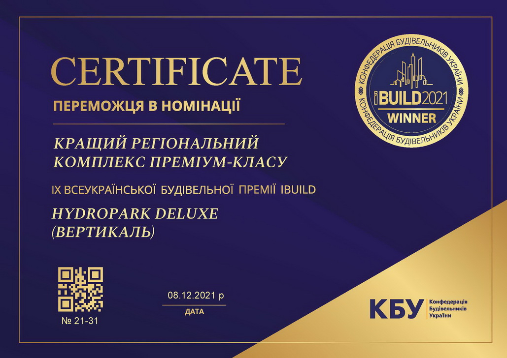 «Я можу з гордістю заявити, що ми змінили стандарти преміум-класу в Івано-Франківську, вивіши їх на новий рівень, якого раніше не було у регіоні. Ми продемонстрували той рівень, якого заслуговують Клієнти, обираючи найякісніше житло, відмінний сервіс та якість життя із відміткою «делюкс». Ми надали нового сенсу люксовому класу нерухомості, який навіть перевищує очікування Клієнта — і підтвердженням цьому є нагорода Всеукраїнської премії IBUILD 2021. Наш проєкт змагався із житловими комплексами різних міст України та Клієнти зробили вибір та користь HydroPark DeLuxe, віддаючи за нас свої голоси.