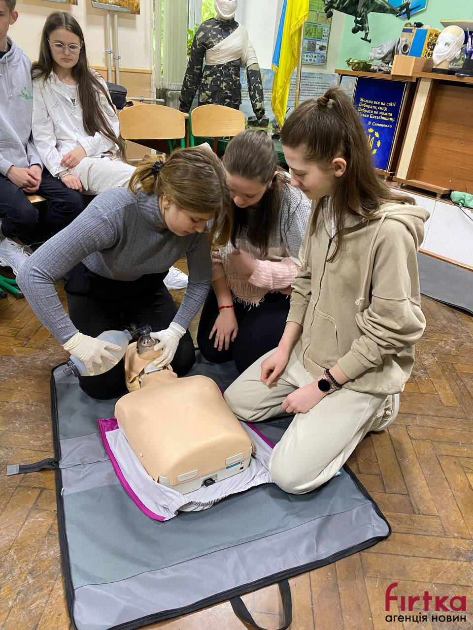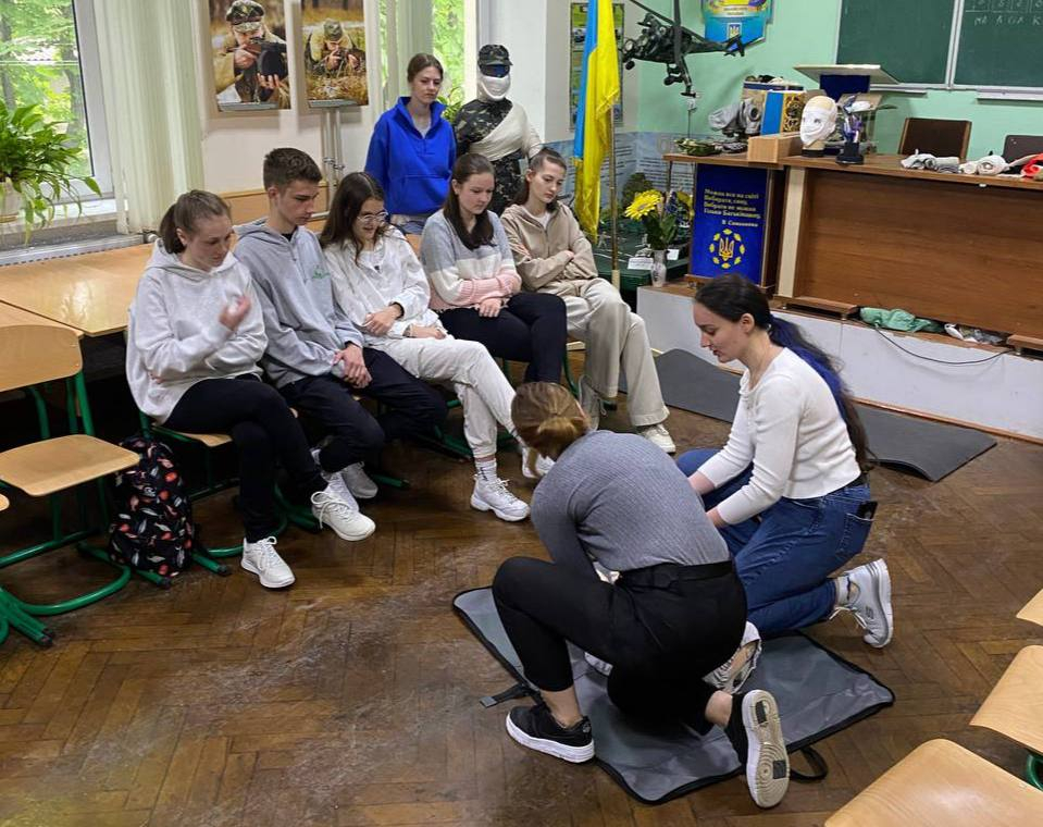 У рамках проєкту під керівництвом студентів ліцеїсти відпрацьовували навички серцево-легеневої реанімації, забезпечення прохідності дихальних шляхів, а також зупинки кровотеч.