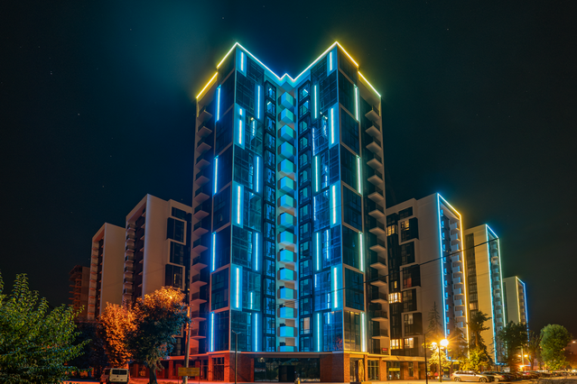 Інновації в ЖК та поза ними. Компанія часто дивує оновленнями на вже реалізованих ЖК, як от жовто-блакитна підсвітка фасаду елітного комплексу «Parus» та сучасного району «Manhattan».