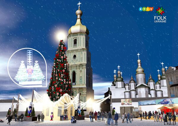 Склалася така традиція, що кожний новий рік столиця зустрічає у певному стилі. Минулого року з легкої руки організаторів свята Folk Ukraine Софіївська площа перетворилася на край північного сяйва, а цього року її разом з головною ялинкою країни прикрасять у стилі різдвяної історії про Лускунчика, звісно, про перемогу добра над злом. Ялинку організатори свята обіцяють у 30 метрів заввишки, що на 5 метрів вище минулорічної, і важитиме вона близько 100 тонн. Щоб її прикрасити, знадобиться близько 800 іграшок і понад 4 кілометри різнокольорових гірлянд. Усе це коштуватиме столиці 2,7 мільйона гривень.