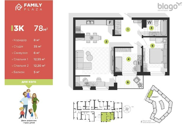 Аналізуючи сучасні тренди вибору квартири, компанія blago developer проектує простір для життя, орієнтуючись на потреби майбутніх мешканців. Вперше в Івано-Франківську забудовник пропонує за такою філософією обрати квартиру. Тобто не просто одно-, дво-, чи трикімнатну квартиру, а проаналізуйте свою сім’ю і оберіть оптимальний простір.