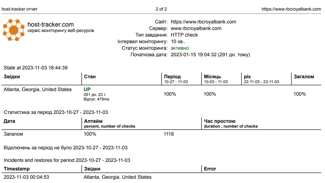 3. Перевірка та аналіз отриманих результатів: Після запуску моніторингу HostTracker надсилатиме повідомлення у разі виявлення проблем із доступністю сайту або інших налаштованих параметрів. За допомогою звітів та графіків можна аналізувати роботу сайту протягом часу.
