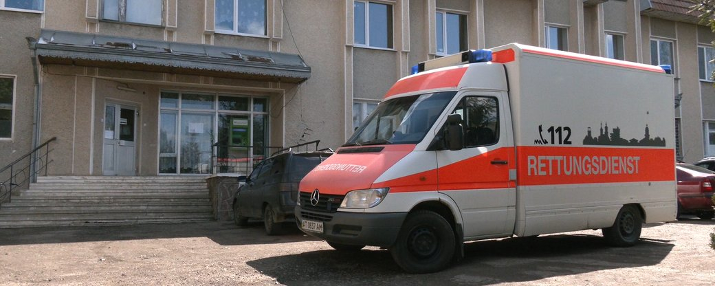 Виїжджає мобільна бригада на виклик на автомобілі швидкої допомоги, яка обладнана усім необхідними, а для працівників бригади – медсестри та водія – є спеціальні захисні костюми.