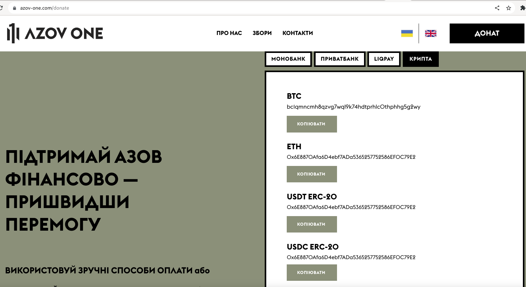 Представники волонтерських фондів в рф заявляють, що їхні сайти, через які збиралися донати, були зламані невідомим хакерським угрупуванням і у формах на переказ фінансової допомоги були замінені реквізити таким чином, що протягом 6 місяців усі перекази росіян йшли на рахунки «Азова».