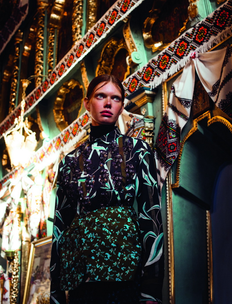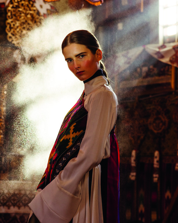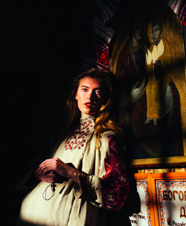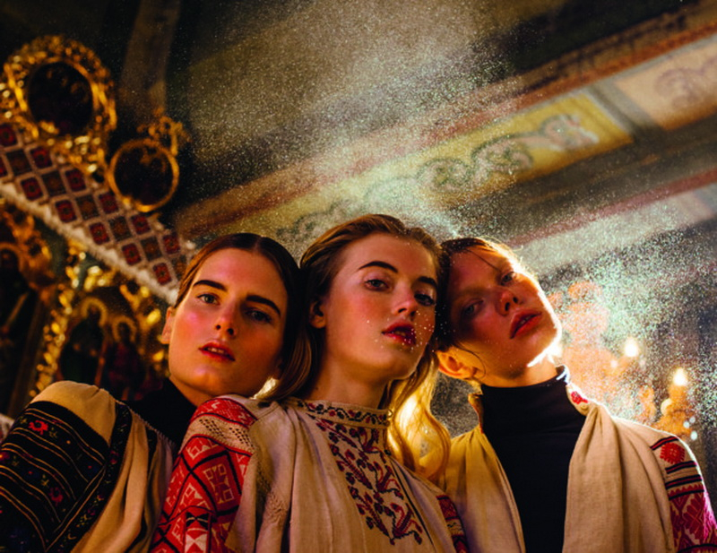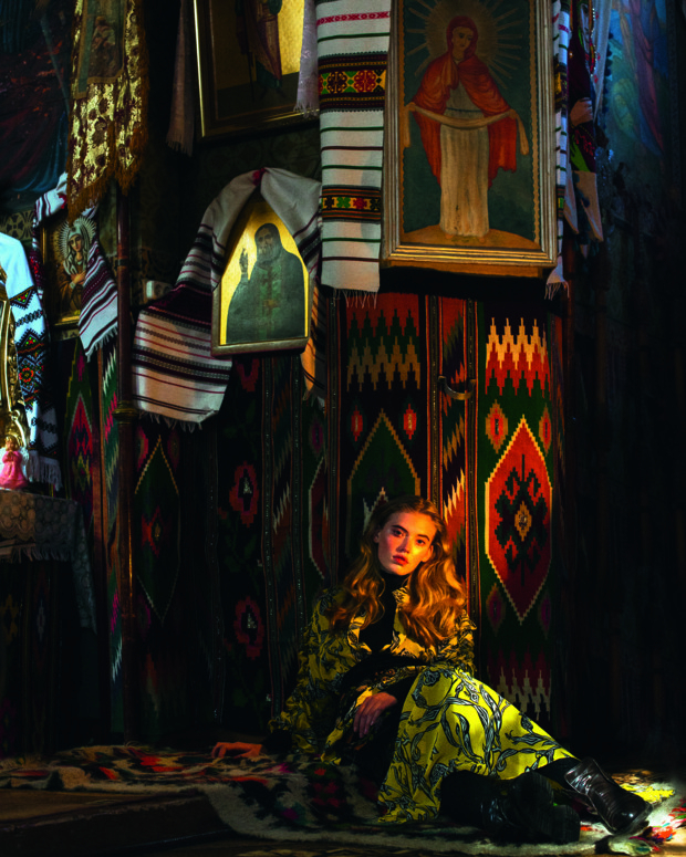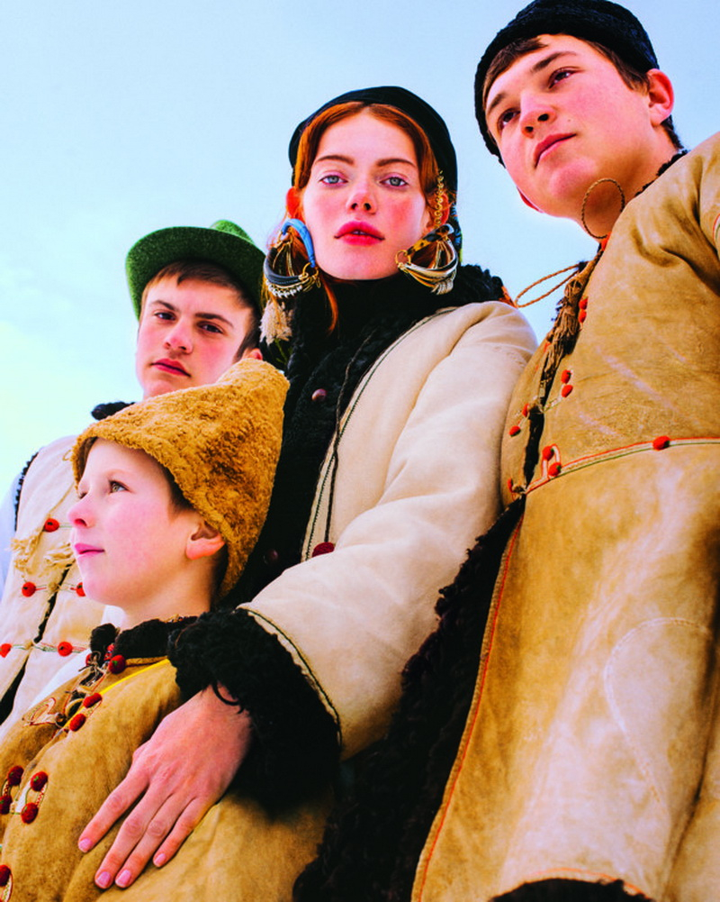 Традиційні вбрання змішані з речами з сезонних колекцій, в кадрі – культові місця: околиці села Белелуя з фільму «Камінний хрест» і церква в Криворівні з фільму «Тіні забутих предків».